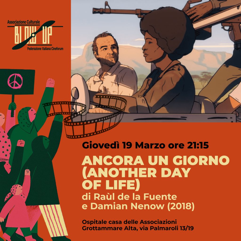 giovedì 19 MARZO alle ore 21.15, presso l’Ospitale Casa delle Associazioni – Grottammare Alta, verrà proiettato il meraviglioso film di animazione ANCORA UN GIORNO (Polonia, Spagna, Germania, Belgio, Ungheria, 2018) di Raùl de la Fuente e Damian Nenow, uno straordinario caso di adattamento cinematografico riuscito a partire dall’omonimo libro del grande giornalista Ryszard Kapuściński.