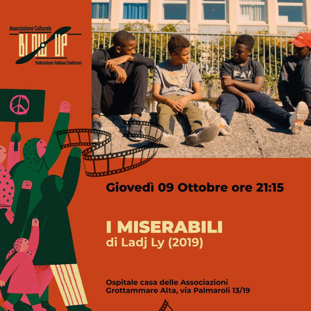 Giovedì 9 ottobre, alle 21.15 verrà proiettato il film “I miserabili” (2019) di Ladj Ly ambientato a Montfermeil, periferia di Parigi. L’agente Ruiz, appena trasferitosi in loco, prende servizio nella squadra mobile di polizia, nella pattuglia dei colleghi Chris e Gwada. Gli bastano poche ore per fare esperienza di un quartiere brulicante di tensioni tra le gang locali e tra gang e forze dell’ordine, per il potere di dettare legge sul territorio. Quello stesso giorno, il furto di un cucciolo di leone dalla gabbia di un circo innesca una caccia all’uomo che accende la miccia e mette tutti contro tutti. Ispirato alle rivolte di strada di Parigi del 2005 e ad altri fatti realmente accaduti, con I Miserabili il regista Ladj Ly, nato e cresciuto, anche come filmaker, nel sobborgo che racconta, espande l’omonimo cortometraggio in un film di grande impatto, tale da riportare alla mente L’odio di Kassovitz, rispetto al quale misura anche la crescita frammentata ed esponenziale di certe realtà della banlieue parigina.