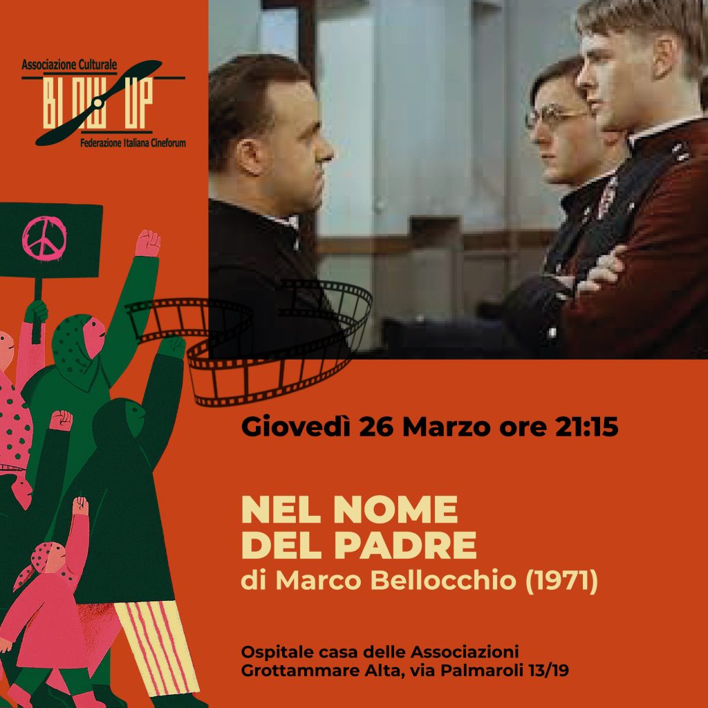 giovedì 26 MARZO alle ore 21.15, presso l’Ospitale Casa delle Associazioni – Grottammare Alta, verrà proiettato NEL NOME DEL PADRE di Marco Bellocchio, uno dei capolavori del grande regista italiano. Esistono due versioni di questo film: quella originale brechtiana del 1971/72 di 109 minuti molto urlata, con numerose sottolineature e riferimenti politici e quella del 2011 accorciata a 90 minuti secondo le indicazioni di Bellocchio, più vicina alla carica sovversiva di Zero in condotta di Jean Vigo. Giovedì sera le persone presenti in sala potranno decidere quale versione vedere!